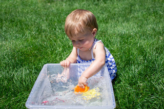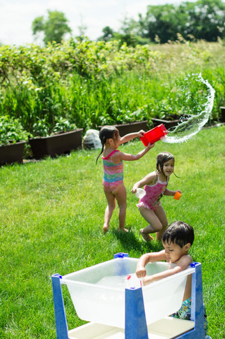 Our water play has been boisterous- lots of splashing, chasing, dumping, and giggles have filled our mornings. As mentioned in the blog post about sunscreen, I try to bring the children out early before the sun's rays are at their strongest.