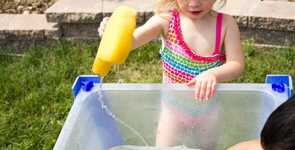 The children loved having a variety of containers to experiment with. There were short, tall, wide, and small containers, funnels, and even sponges to accommodate lots of adventures and to appeal to the wide age group of children at Blue Sky Daycare now.