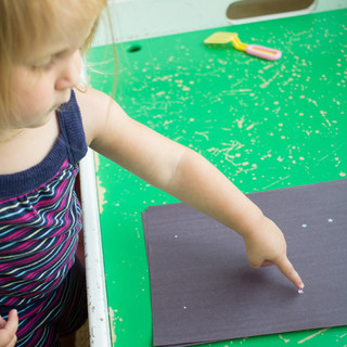 The children and I also talked about constellations and used sparkling star stickers to create a "constellation" that formed the first letter of each child's name. This was great fine motor work!